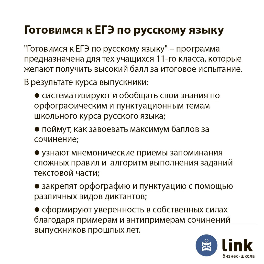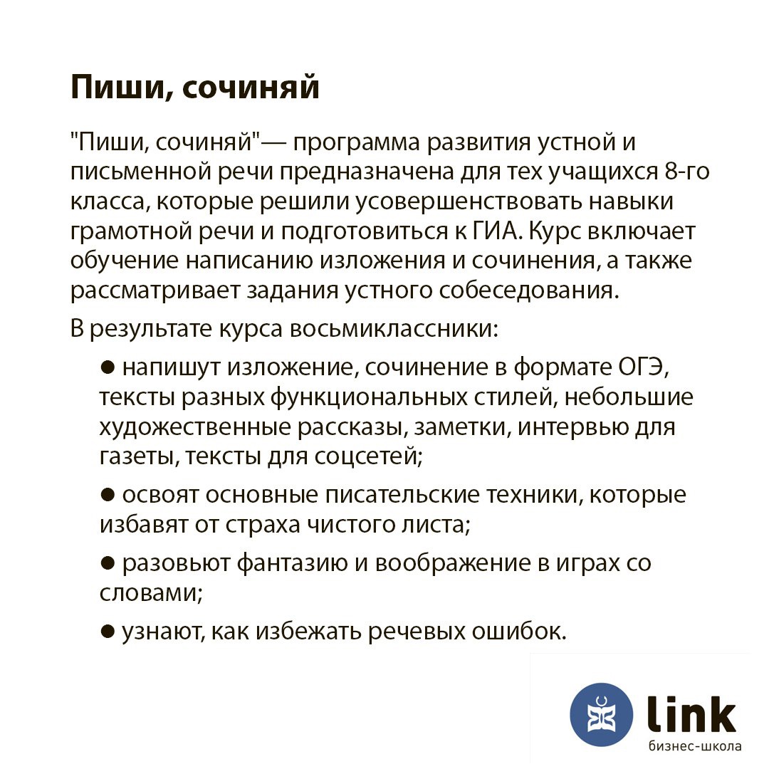 С осени в школе LINK стартуют 2 новых курса по русскому языку: «Готовимся к ЕГЭ» и «Пиши, сочиняй».