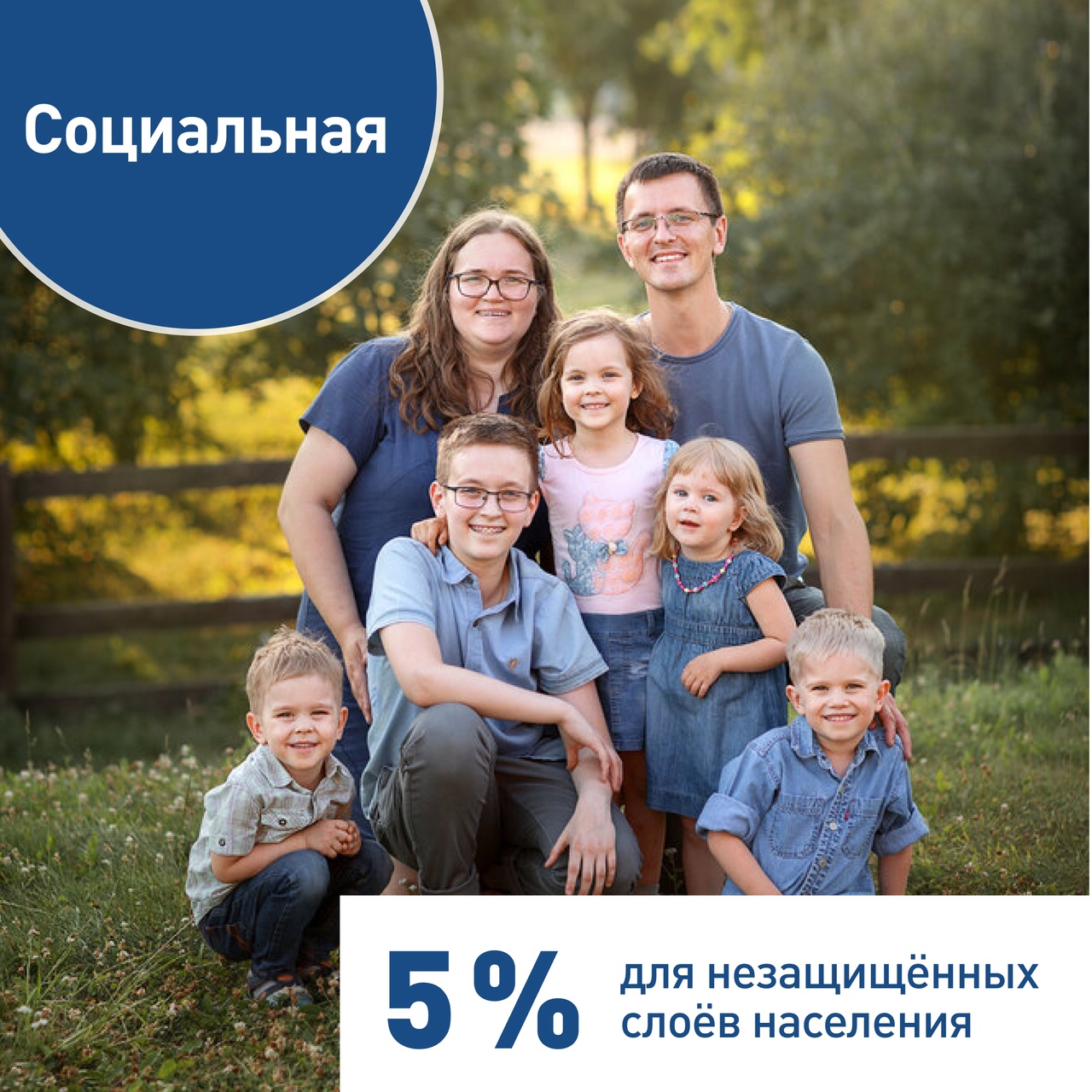 - "Социальная". Для незащищённых слоев населения (людей с инвалидностью, многодетных семей и детей-сирот) цена договора также уменьшается на 5 %.