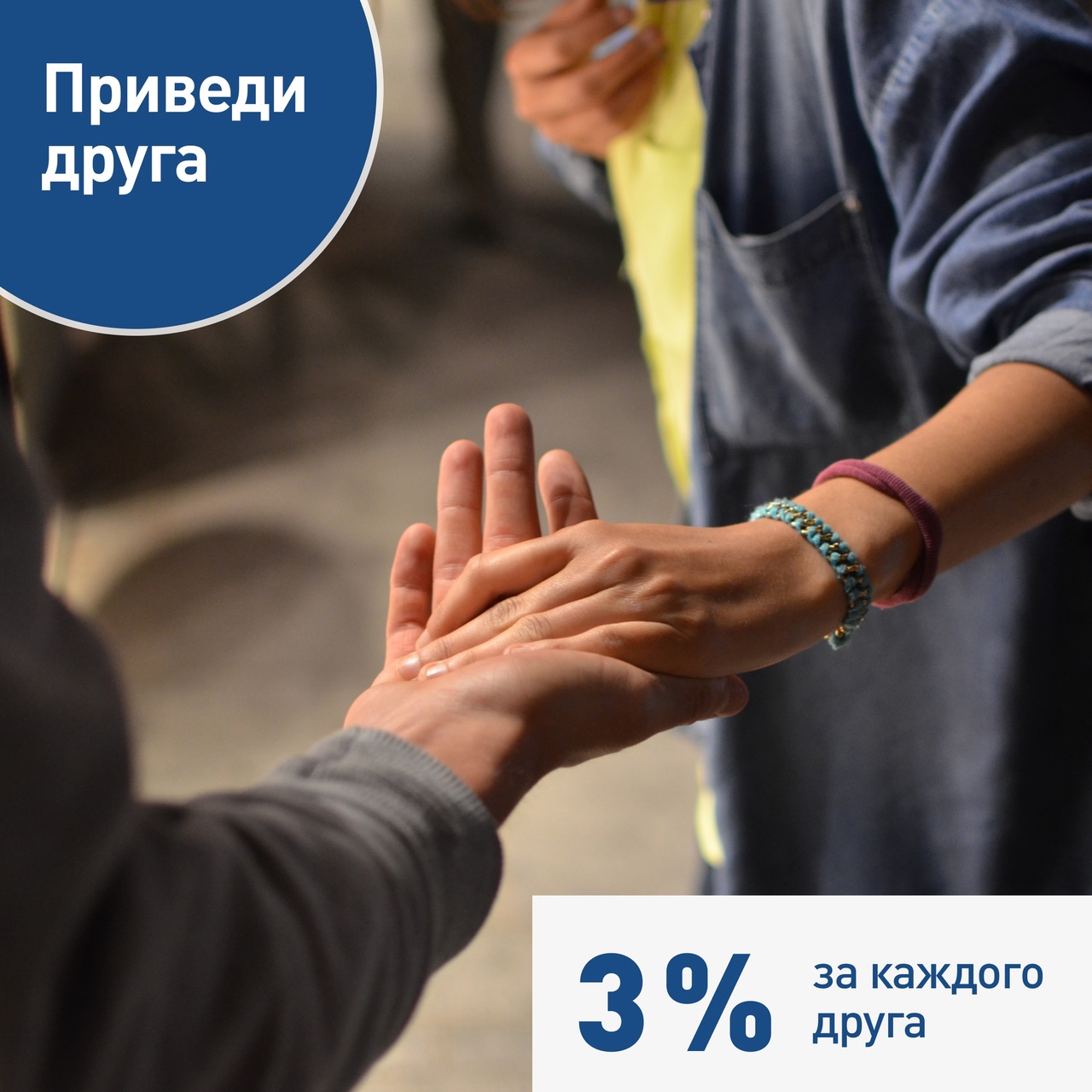** Каждый приведенный друг уменьшает цену вашего договора на 3 %.