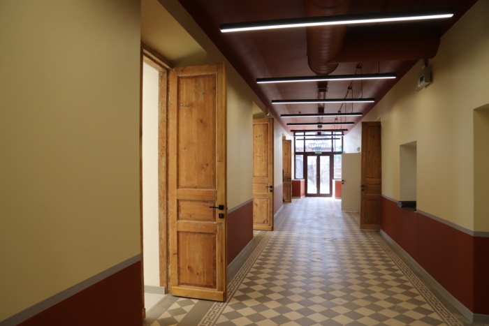 Зданию на ул.Ермака, д.3 более 100 лет. Изначально здесь было два отдельных здания: богадельня и больница. В 1930-х годах их соединили тремя оконными проемами. Здание строилось в три этапа, у каждого свои архитектурные особенности. Проект вела АО «Ивановореставрация». Сохранена объемно-пространственная структура и этажность, восстановлена метлахская плитка, которой устланы полы обоих этажей. Отреставрирована и еще одна историческая составляющая объекта - чугунная литая лестница, которая за годы простоя также претерпела большие разрушения.