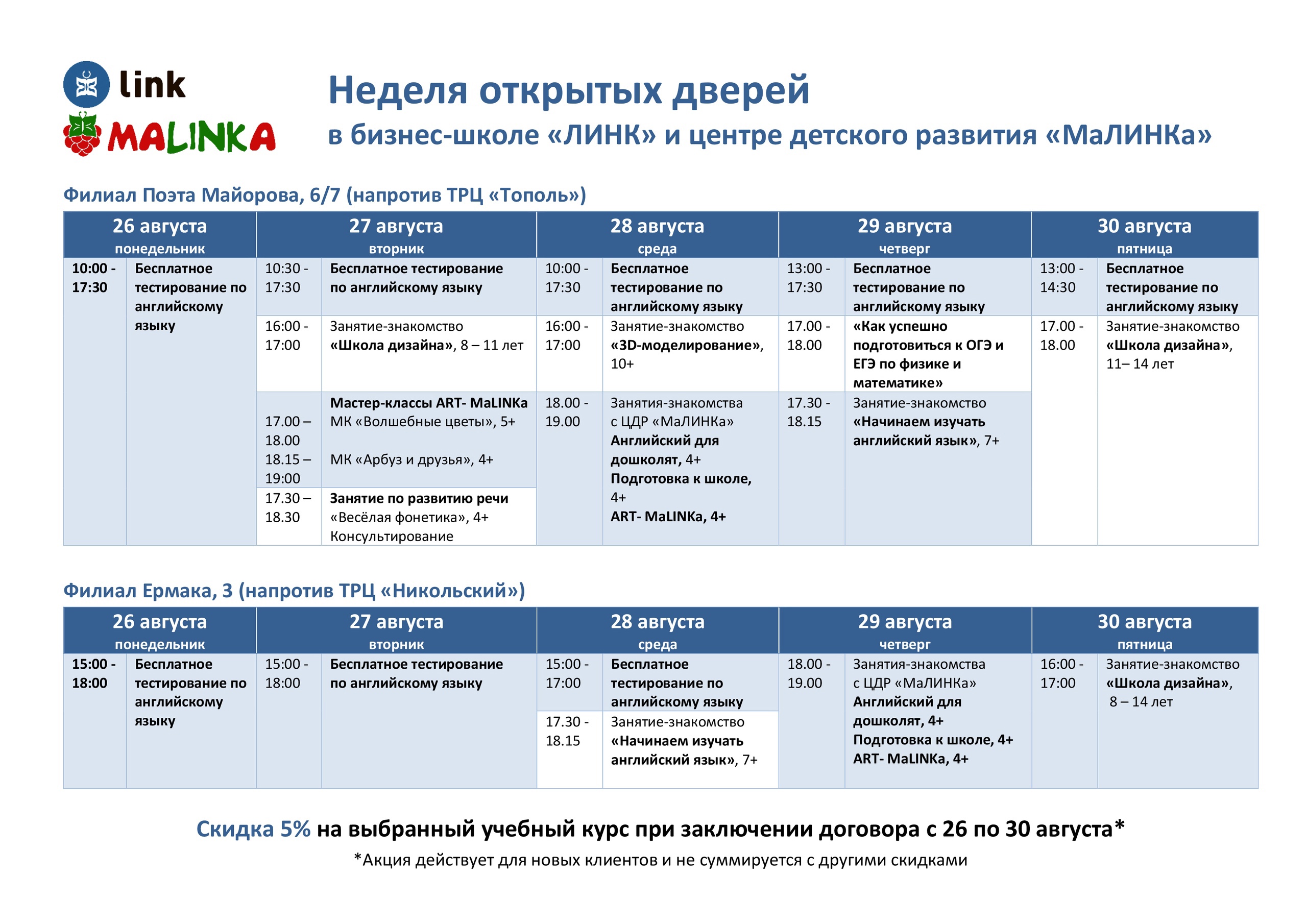 Дорогие родители и будущие ученики, приглашаем вас на Дни открытых дверей в Бизнес-школе ЛИНК и Детском центре МаЛИНКа, которые приурочены к началу нового учебного года!