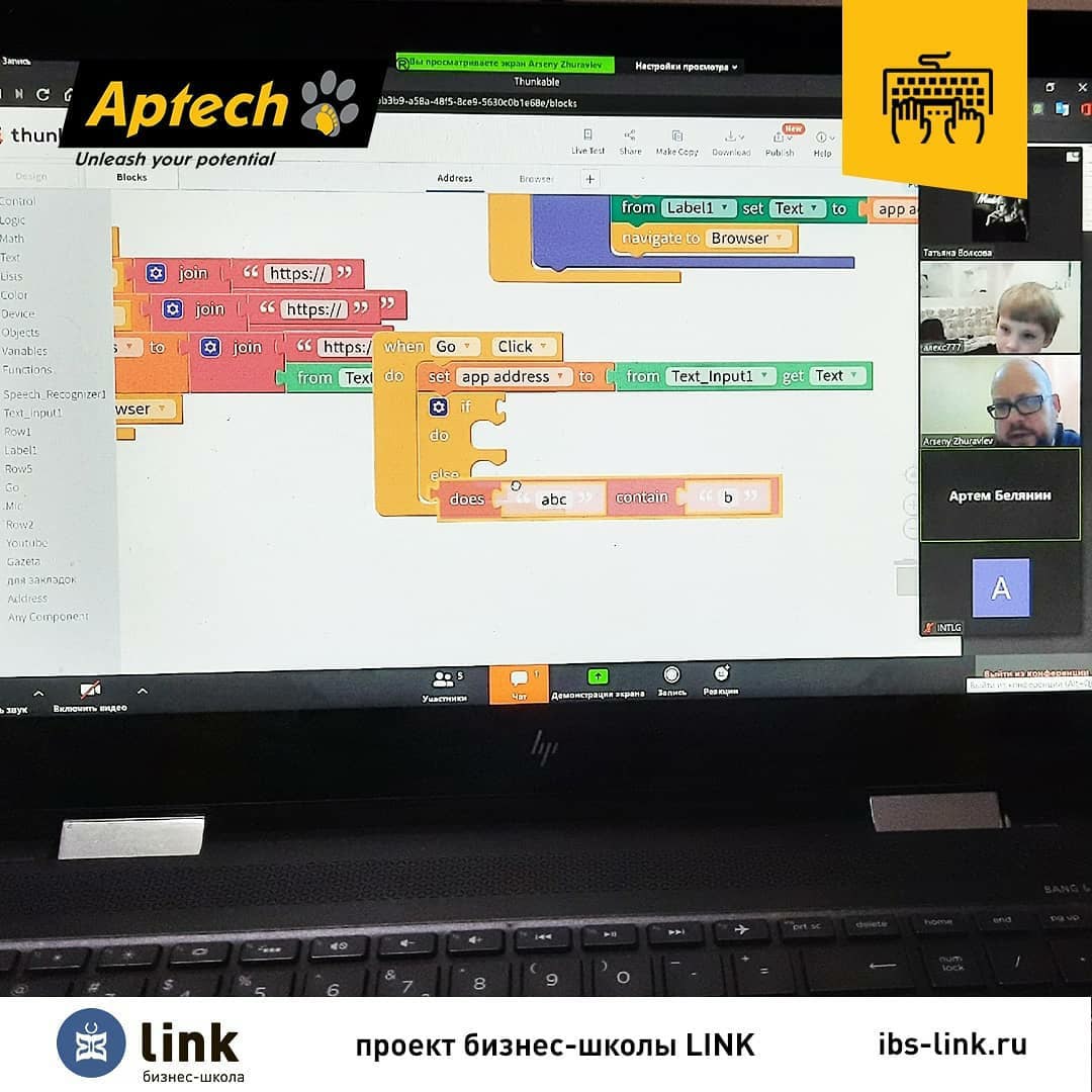 Младшая группа разрабатывает мобильные приложения по блочной системе, а старшие - пишут программные коды сайтов)