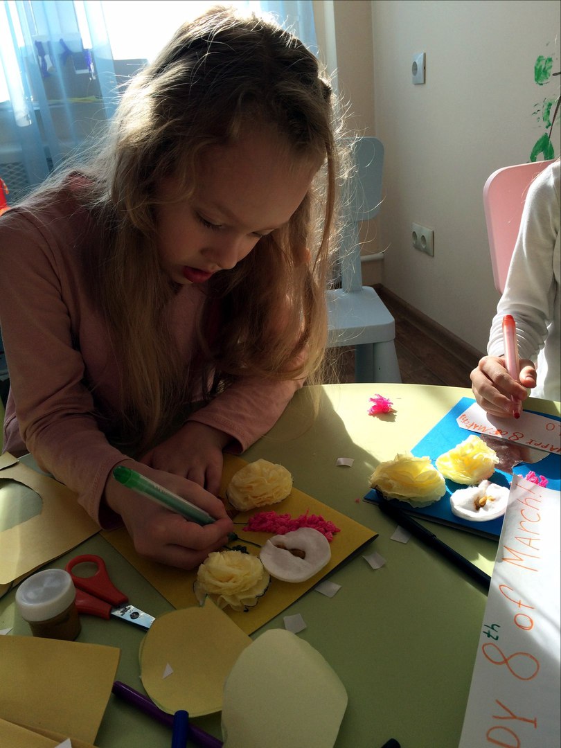 Творческая мастерская (40 минут) - мы повторяем лексику с урока английского языка, рисуем, лепим, вырезаем, создаем чудесные поделки, при этом обогащая свой словарь новыми словами; развиваем мелкую моторику, усидчивость, воображение.